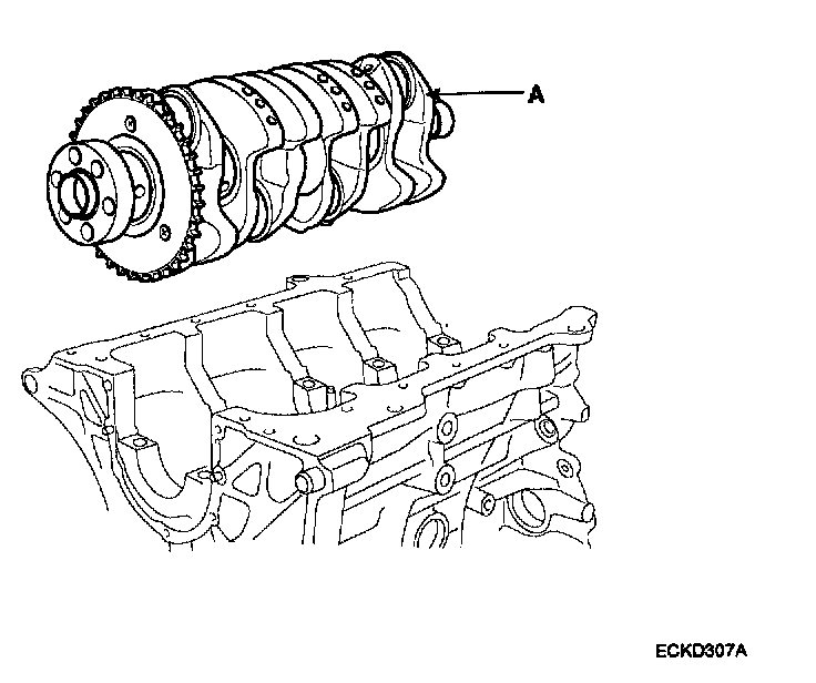 19. Lift the crankshaft(A) out of the engine, being careful not to damage journals.