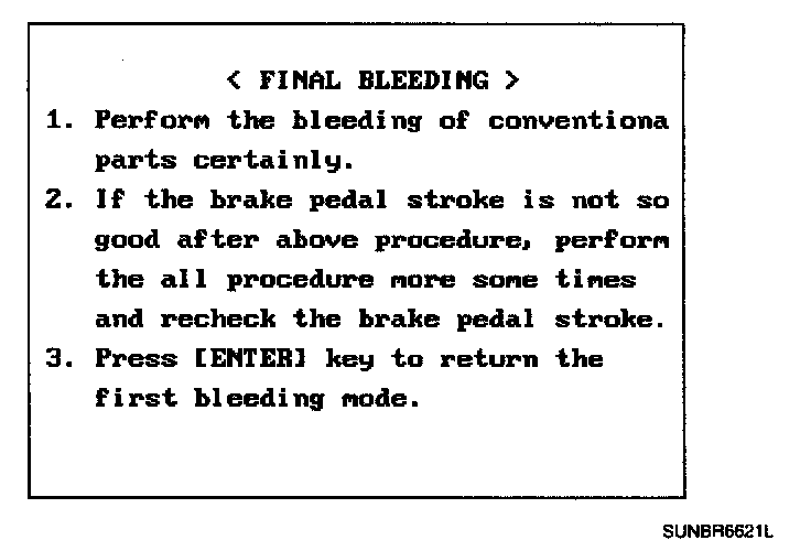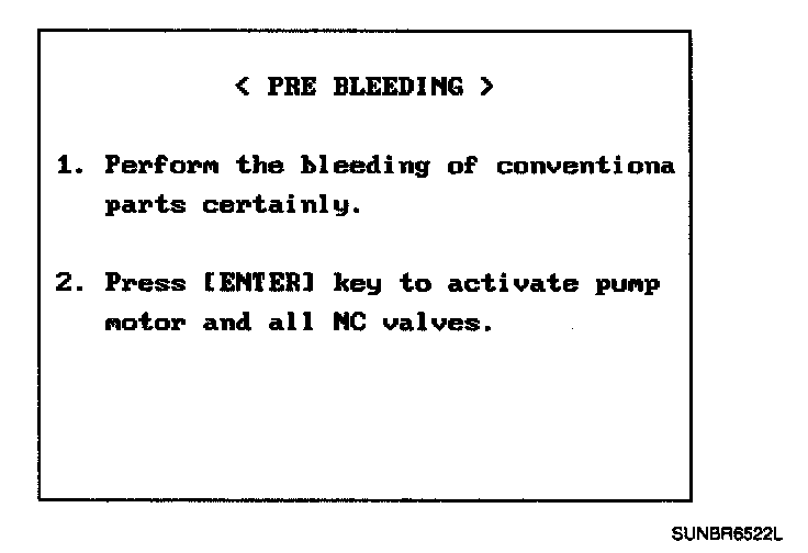 BLEEDING OF BRAKE SYSTEMThis procedure should be followed to ensure adequate bleeding of air and filling of the ABS unit, brake lines and master cylinder with brake fluid.