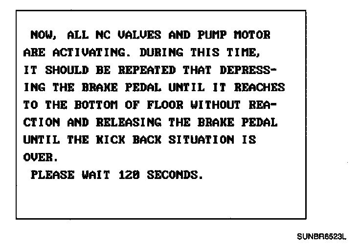 CAUTION: You must obey the maximum operating time of the ABS motor with the scan tool to prevent the motor pump from burning.