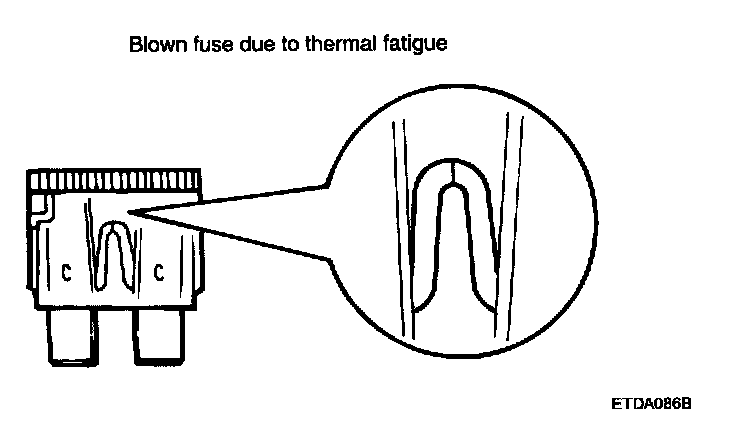 INSPECTION OF FUSESWhen a fuse is blown, there are two probable causes. The two causes can easily be determined by a visual check after removing the fuses.