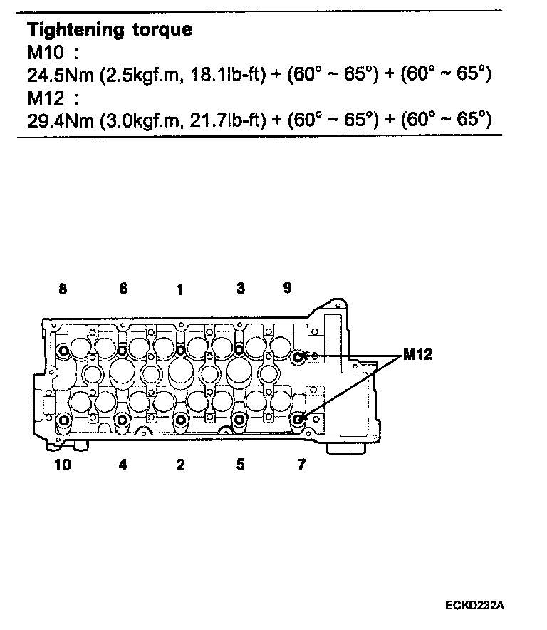 Camshaft bearing cap bolts 13.7-14.7 Nm (1.4 - 1.5 kgf-m, 10.1-10.8 ft. lbs.)