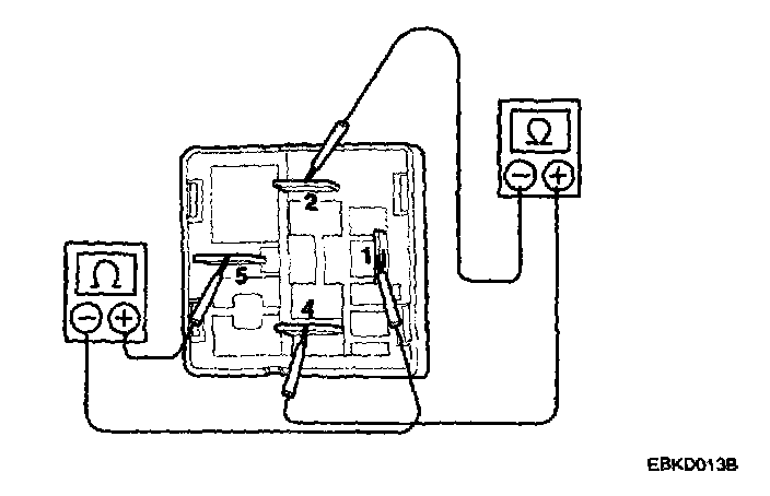 - Using an ohmmeter, check that there is continuity between terminals 2 and 4. If there is no continuity; replace the relay.