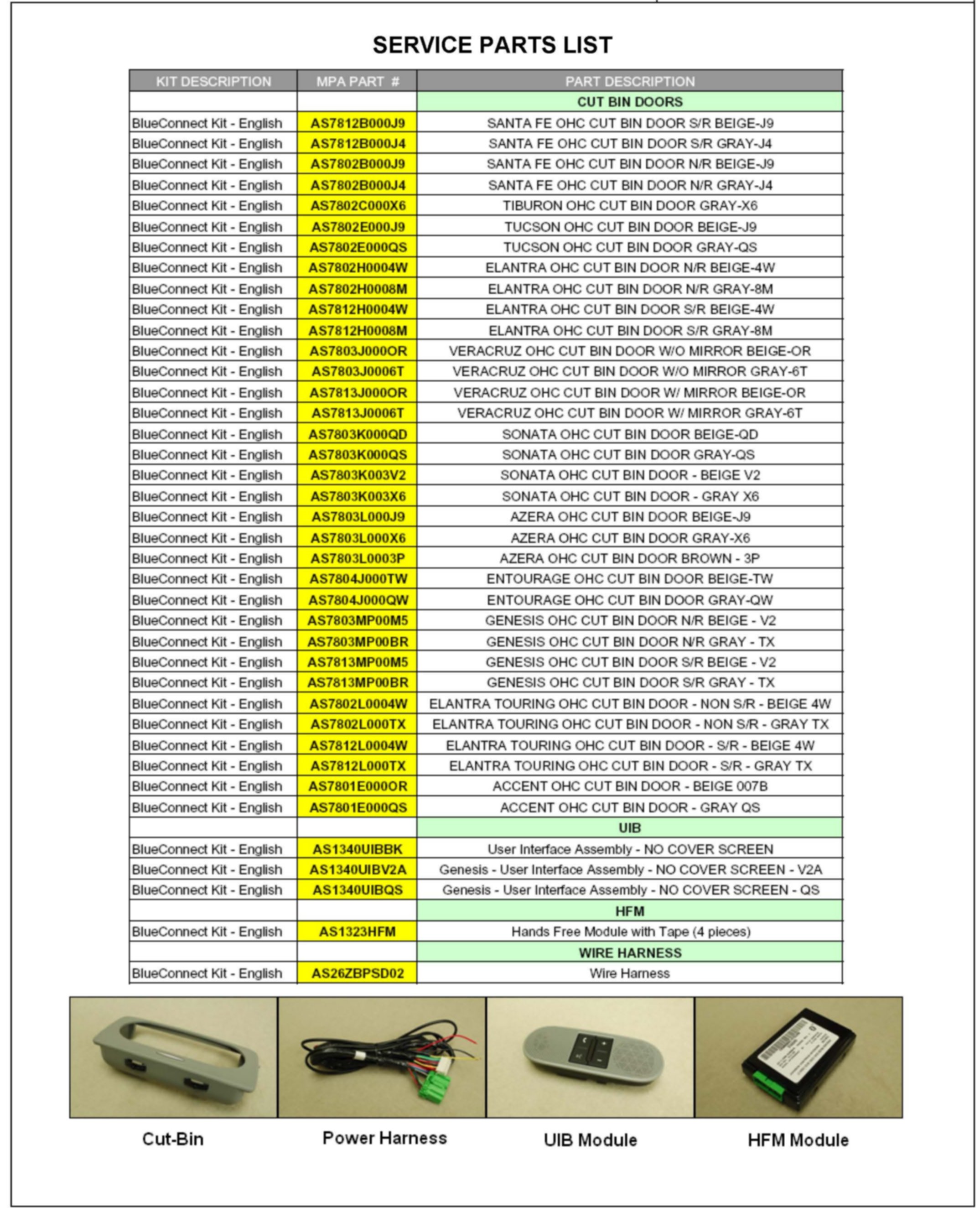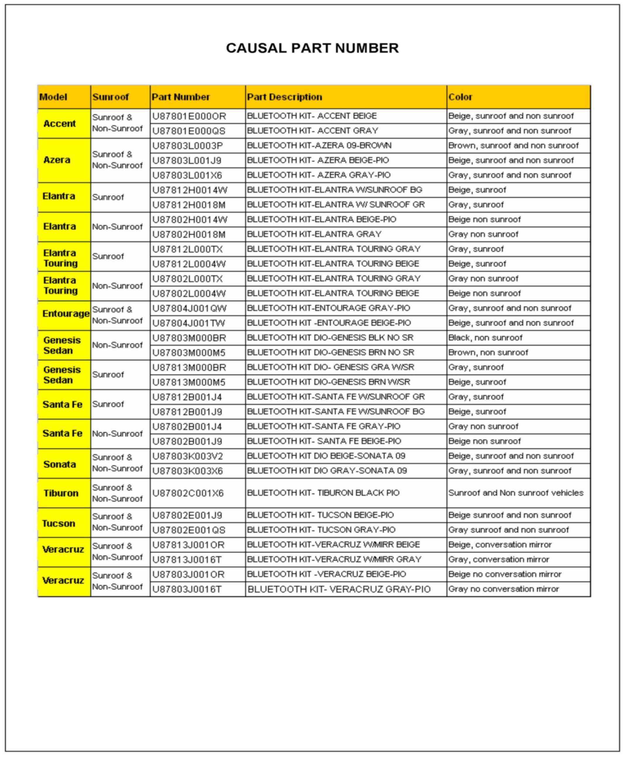 Page 19 - 20 List of Available Replacement Service Parts and Causal Part Numbers