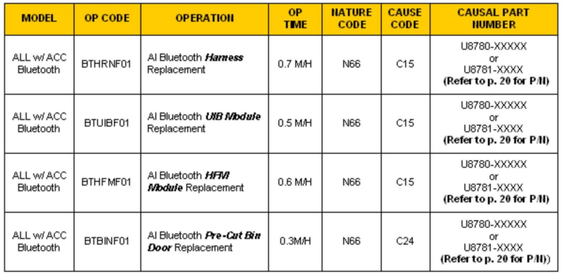 Page 21 Warranty Information (Op Codes)