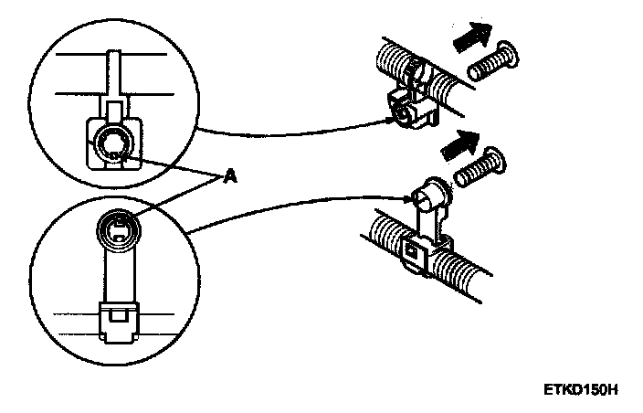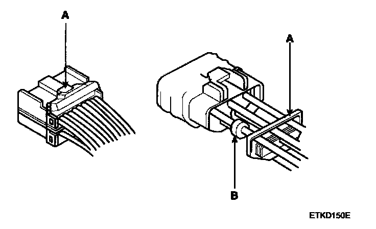 8. Before connecting connectors, make sure the terminals (A) are in place and not bent.