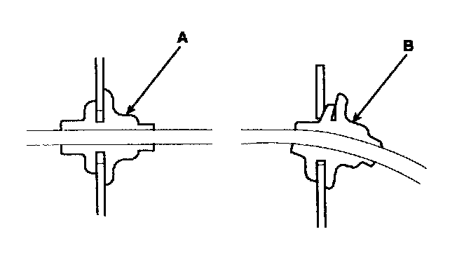 6. Seat grommets in their grooves properly (A). Do not leave grommets distorted (B).