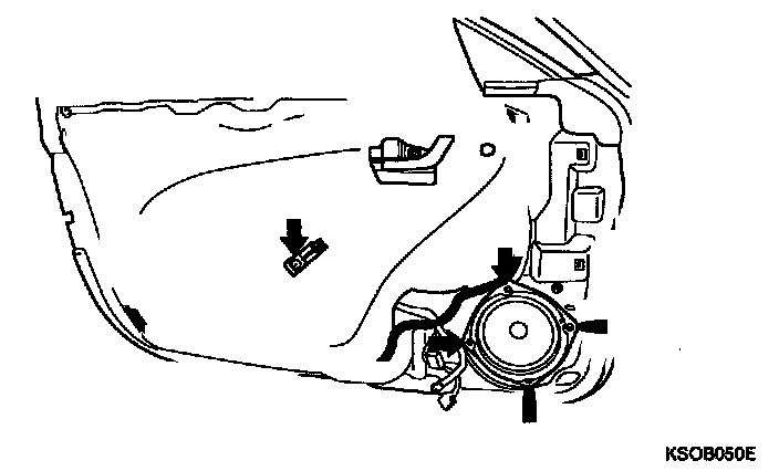 5. Remove the door grip handle mounting bracket, speaker and door trim seal.
