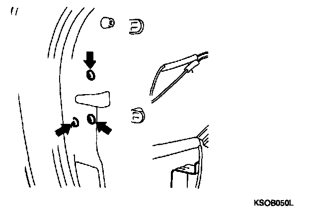 12. Disconnect the cable, after loosening the inner handle mounting screw, push the inner handle toward the direction shown in the illustration and remove it.