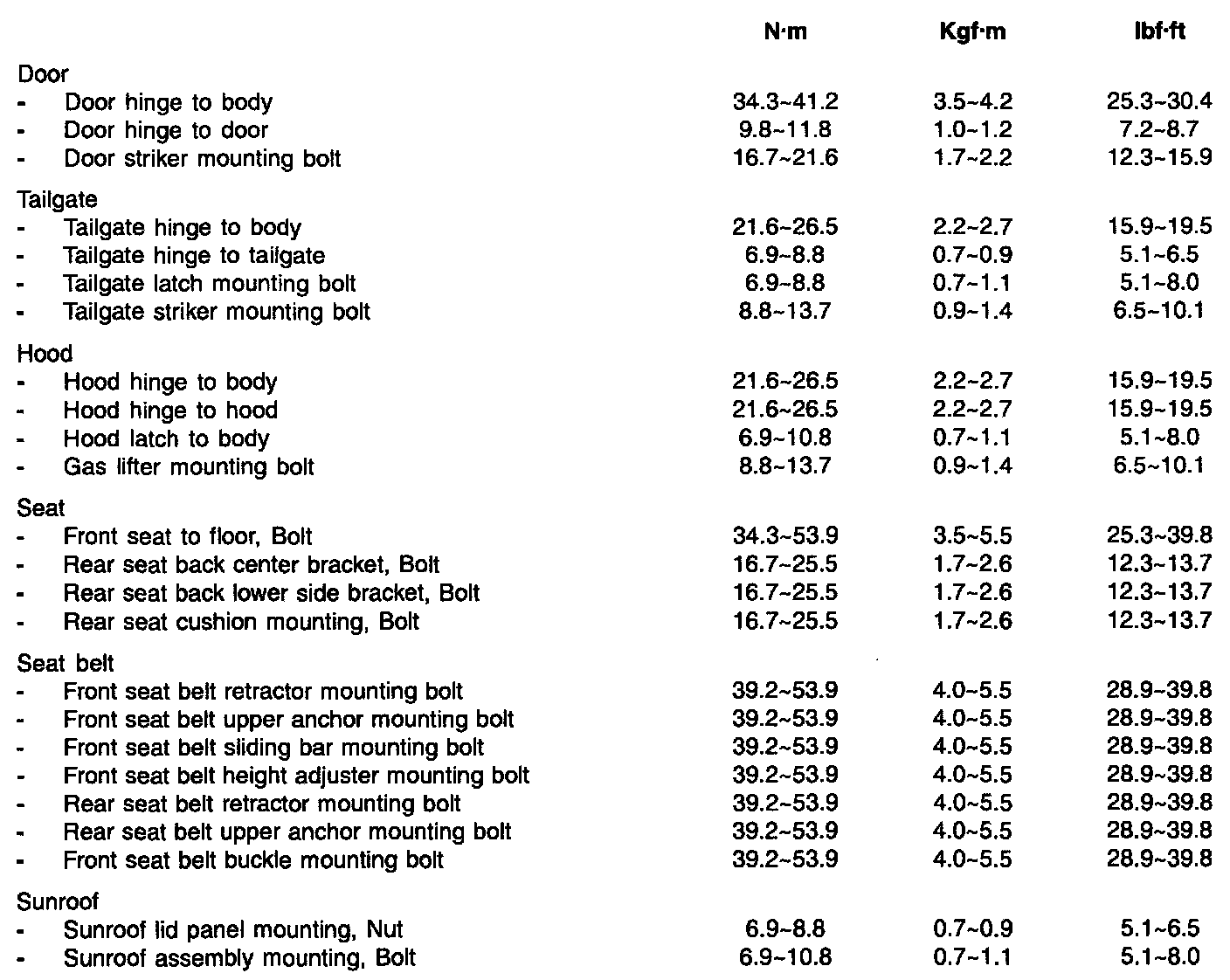 Tightening Torques: