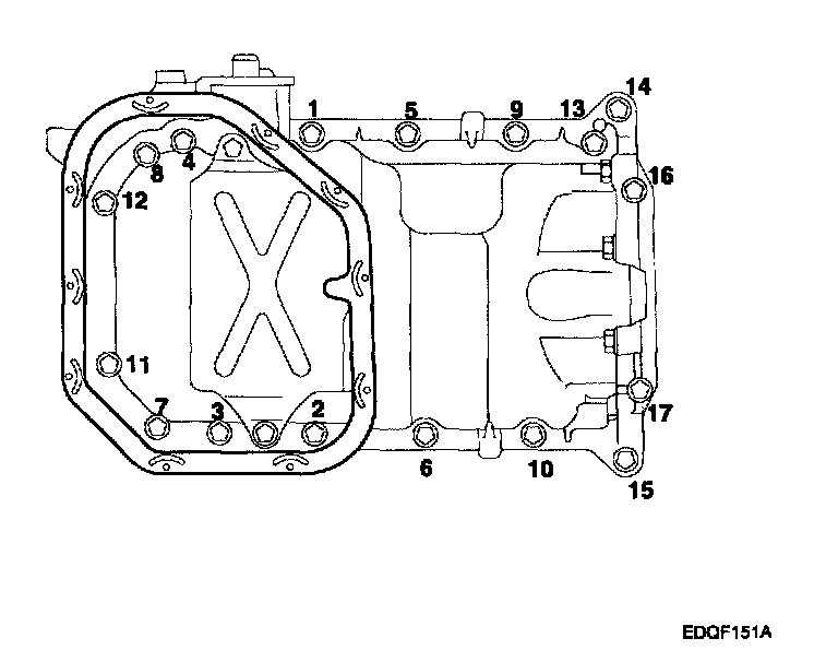 Lower oil pan bolt 9.8-11.8 Nm (1.0-1.2 kgf-m, 7.2-8.7 ft. lbs.)Upper oil pan bolt