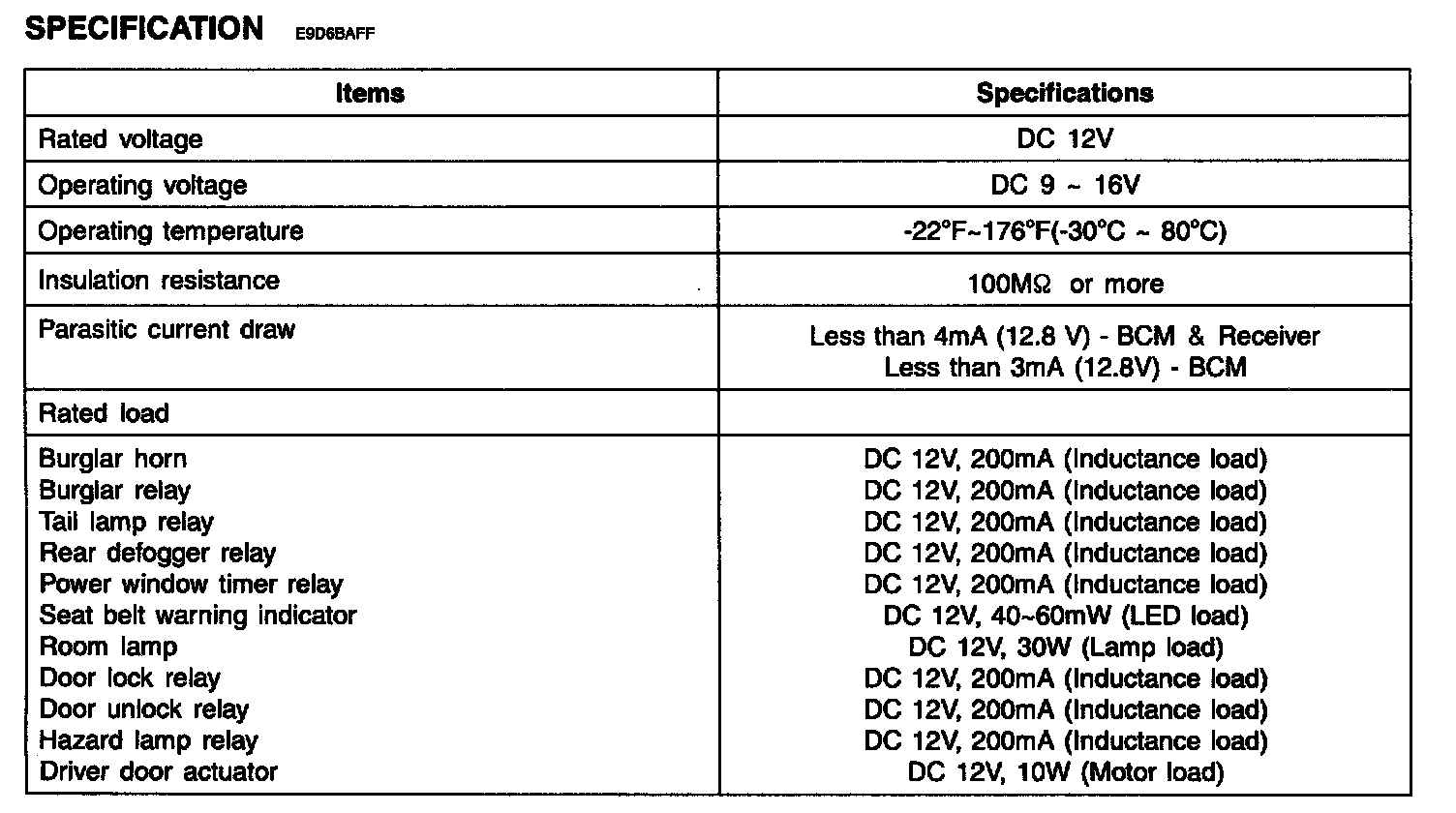 Body Control Systems: Specifications