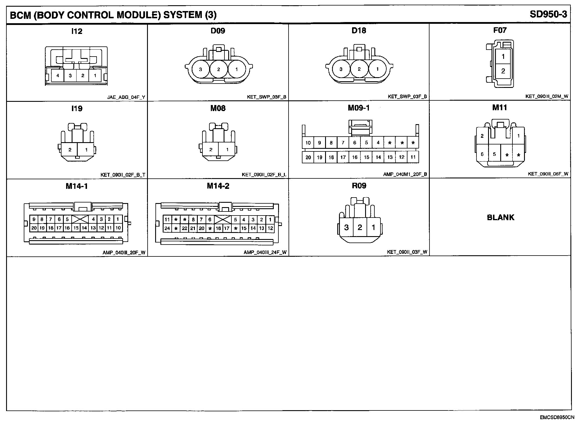 BCM (Body Control Module) System Connector Pin Outs: