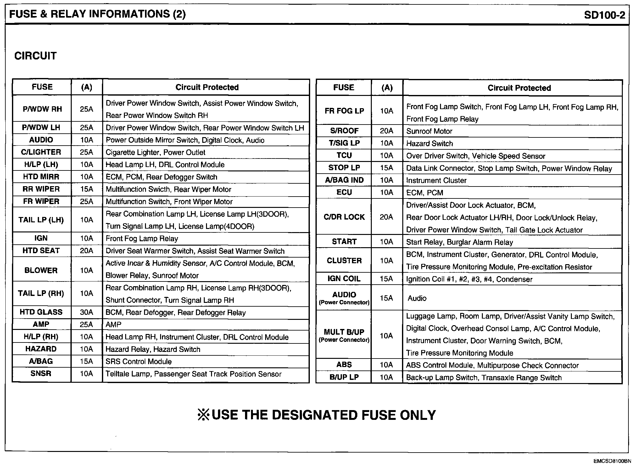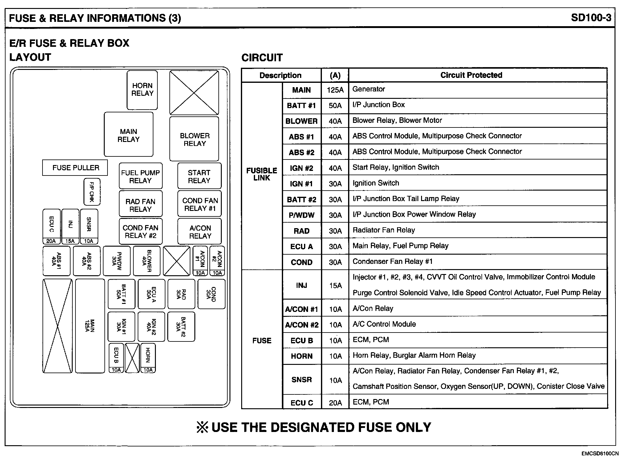 E/R Fuse & Relay Box View & Circuit Details: