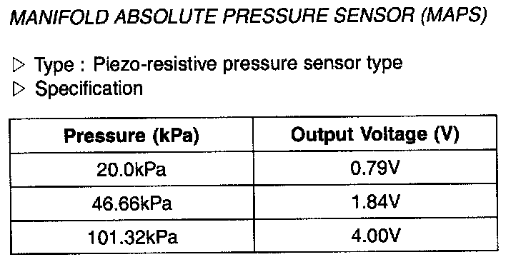 Manifold Absolute Pressure Sensor (MAPS) - Specifications: