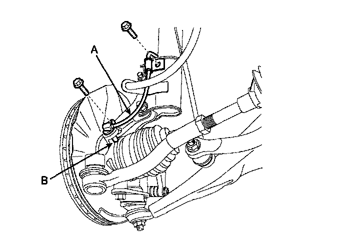 4. Remove the wheel speed sensor (A) from the knuckle (B).