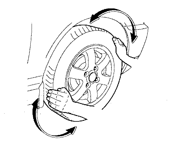 3. If the tire and wheel (hub) is loose on the spindle, does not rotate freely, or has a rough feeling when spun, carry out one of the following.