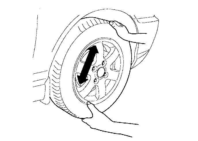 2. Grip each front tire at the top and bottom and move the wheel inward and outward while lifting the weight of the tire off the front wheel bearings.