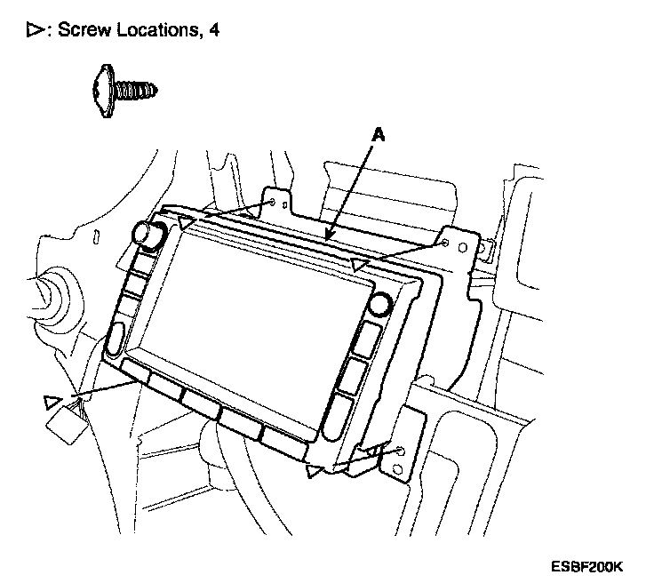 3. Disconnect the audio connector and antenna cable, then remove the audio assembly (A).