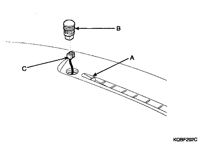 With the (-) driver, remove the photo sensor (B) from the left side of defrost nozzle (A).