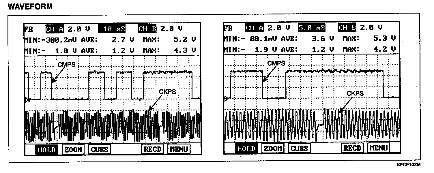Camshaft Position Sensor (CMPS) is a hall sensor and detects the camshaft position by using a hall element. It is related with Crankshaft Position Sensor (CKPS) and detects the piston position of each cylinder which the CKPS can't detect. The two CMPS are installed on engine head cover of bank 1 and 2 and uses a target wheel installed on the camshaft. This sensor has a hall-effect IC which output voltage changes when magnetic field is made on the IC with current flow. So the sequential injection of the 6 cylinders is impossible without CMPS signal.