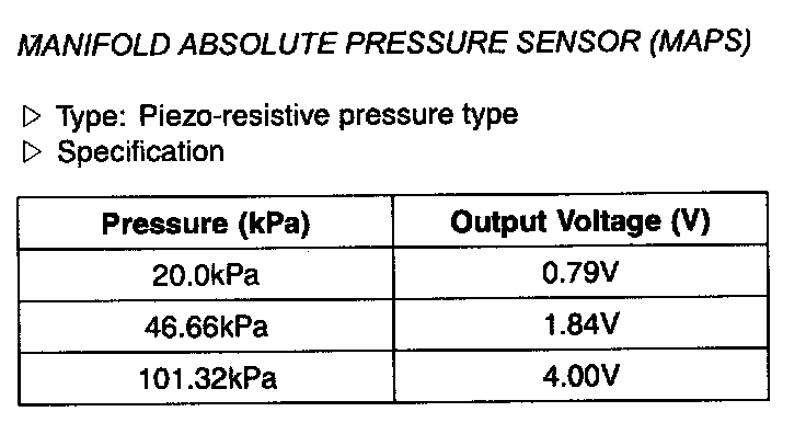 Manifold Absolute Pressure Sensor (MAPS) - Specification: