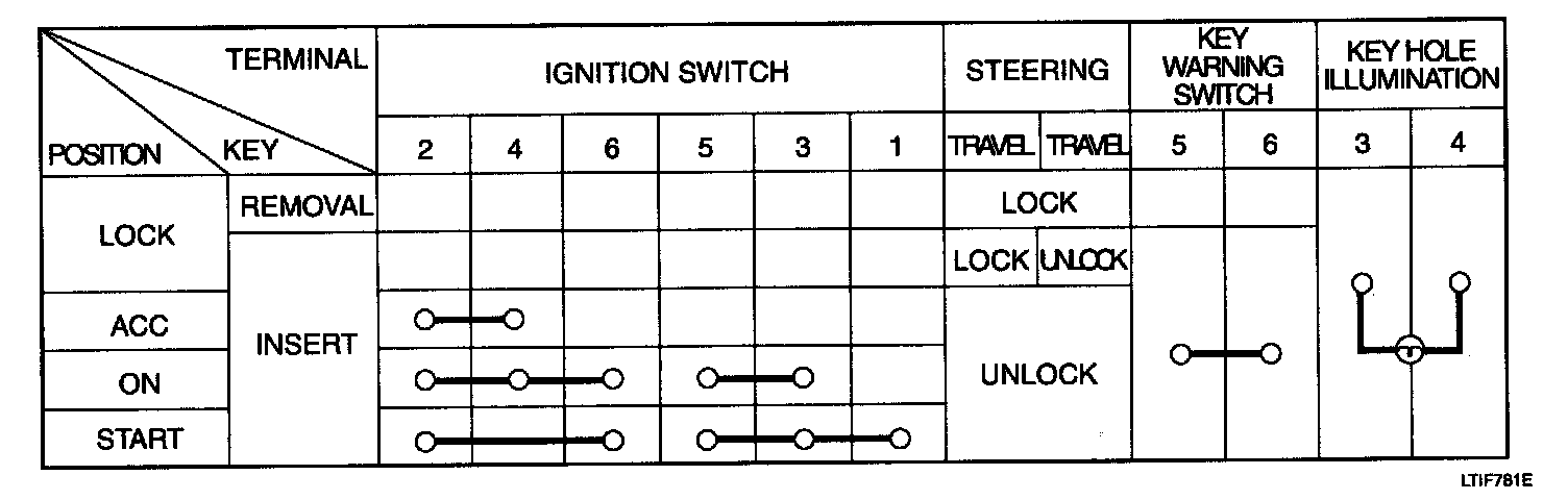 1. Disconnect the ignition switch connector and key warning switch connector from under the steering column.