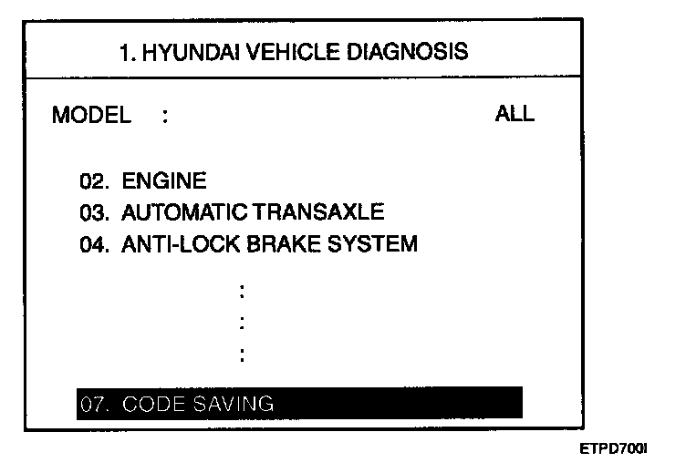 3. After selecting "CODE SAVING" menu, push "ENTER" key, then the screen will be shown as below.