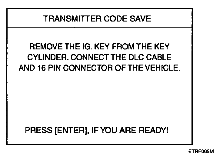 4. After removing the ignition key from key cylinder, push "ENTER" key to proceed to the next mode for code saving. Follow steps 1 to 4 and then code saving is completed.