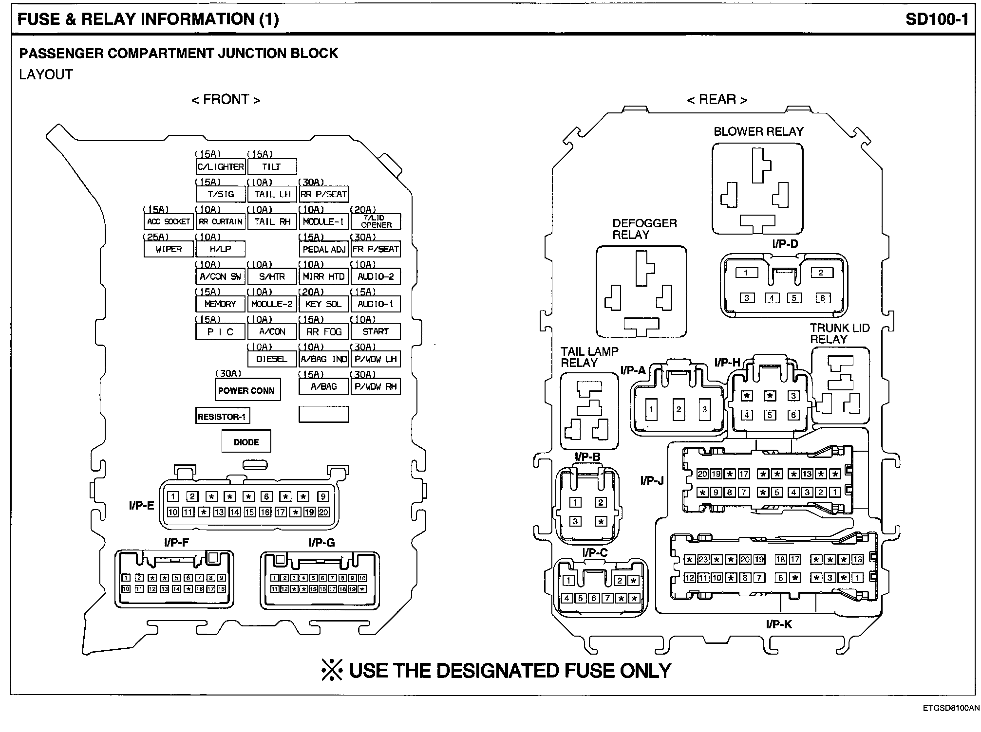 Passenger Compartment Junction Block Layout Views: