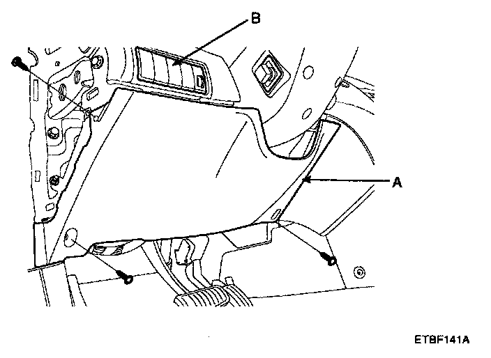 2. Remove the crash pad lower panel (A) and switch (B).