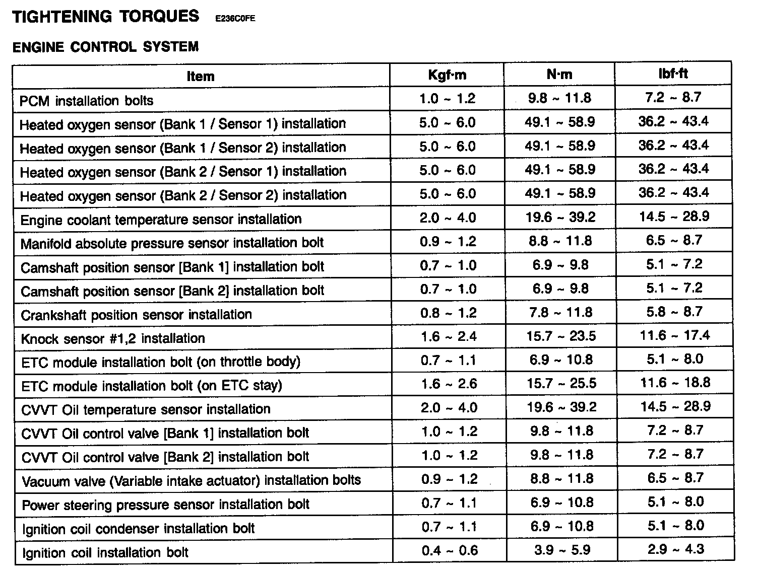 Tightening Torques - Engine Control System: