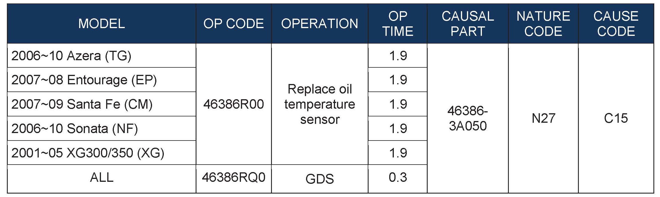 WARRANTY INFORMATION (OIL TEMPERATURE SENSOR AND HARNESS):