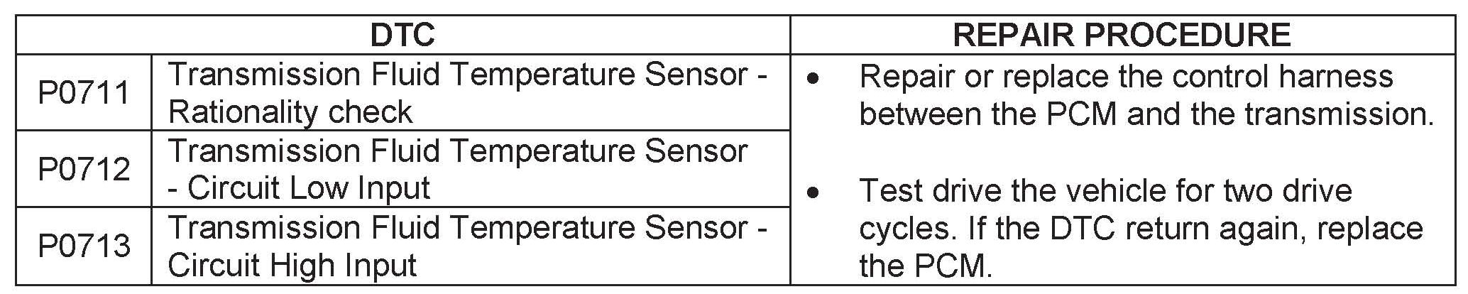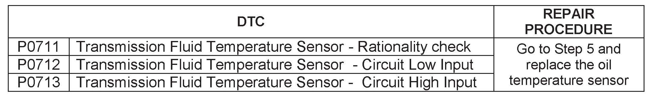 OIL TEMPERATURE SENSOR DTC P0711, P0712 & P0713