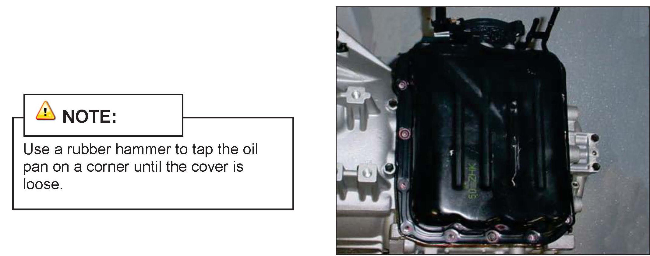 8. Remove the bolts and remove the oil pan from the transaxle.