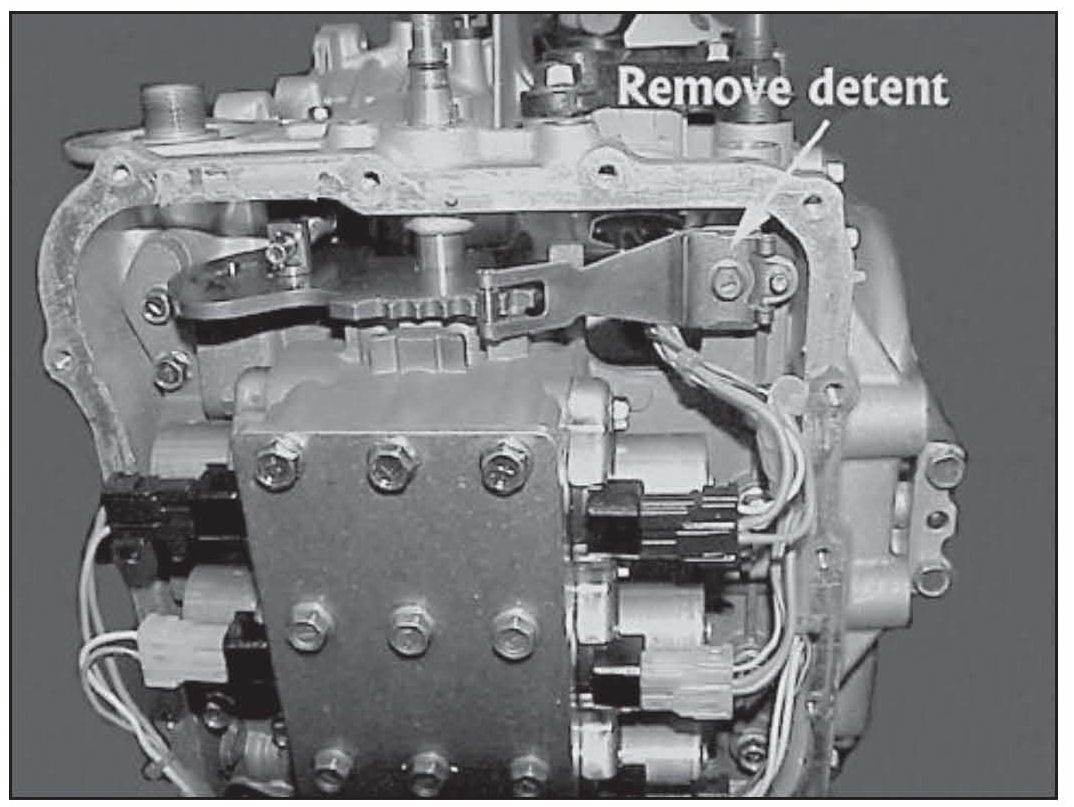 10. Remove the manual control shaft detent.