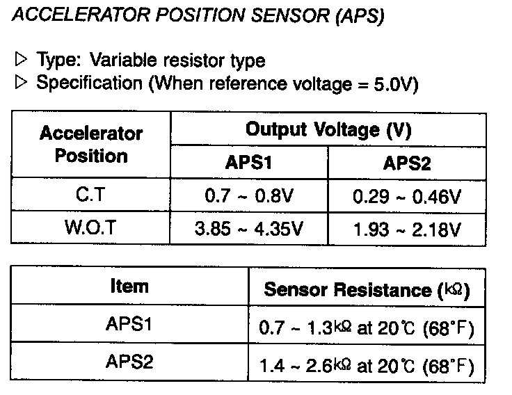 Accelerator Position Sensor - Specification: