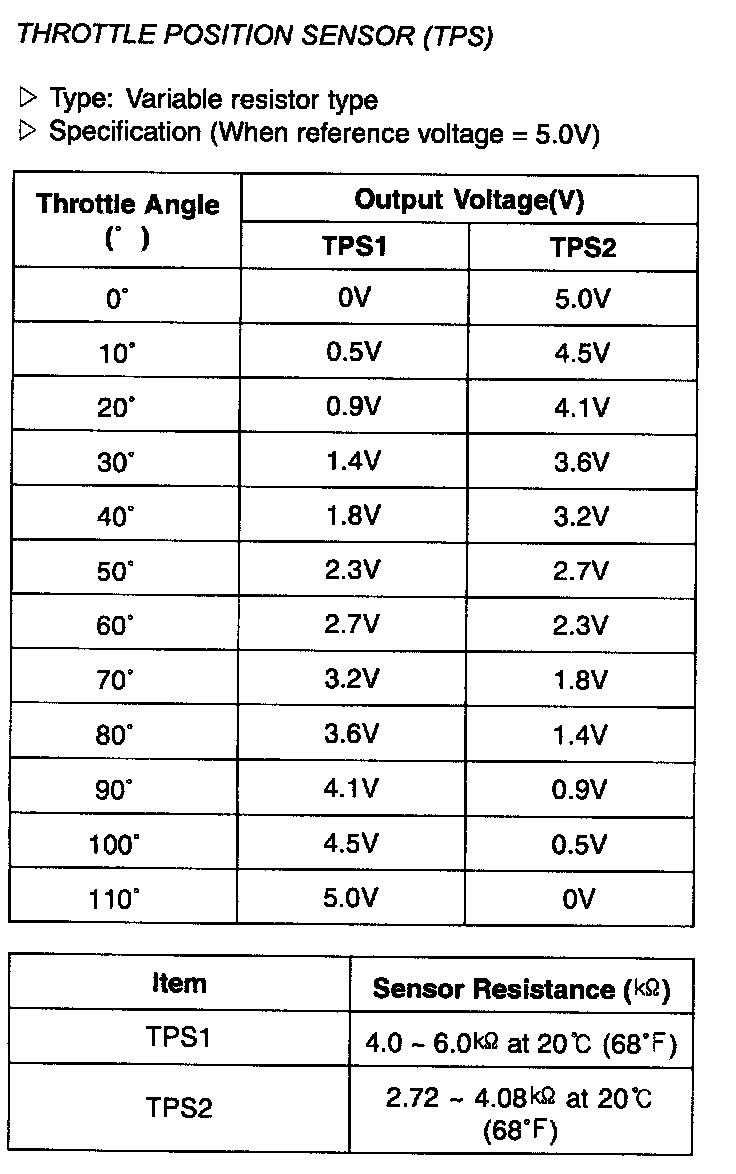 Throttle Position Sensor (TPS) - Specification: