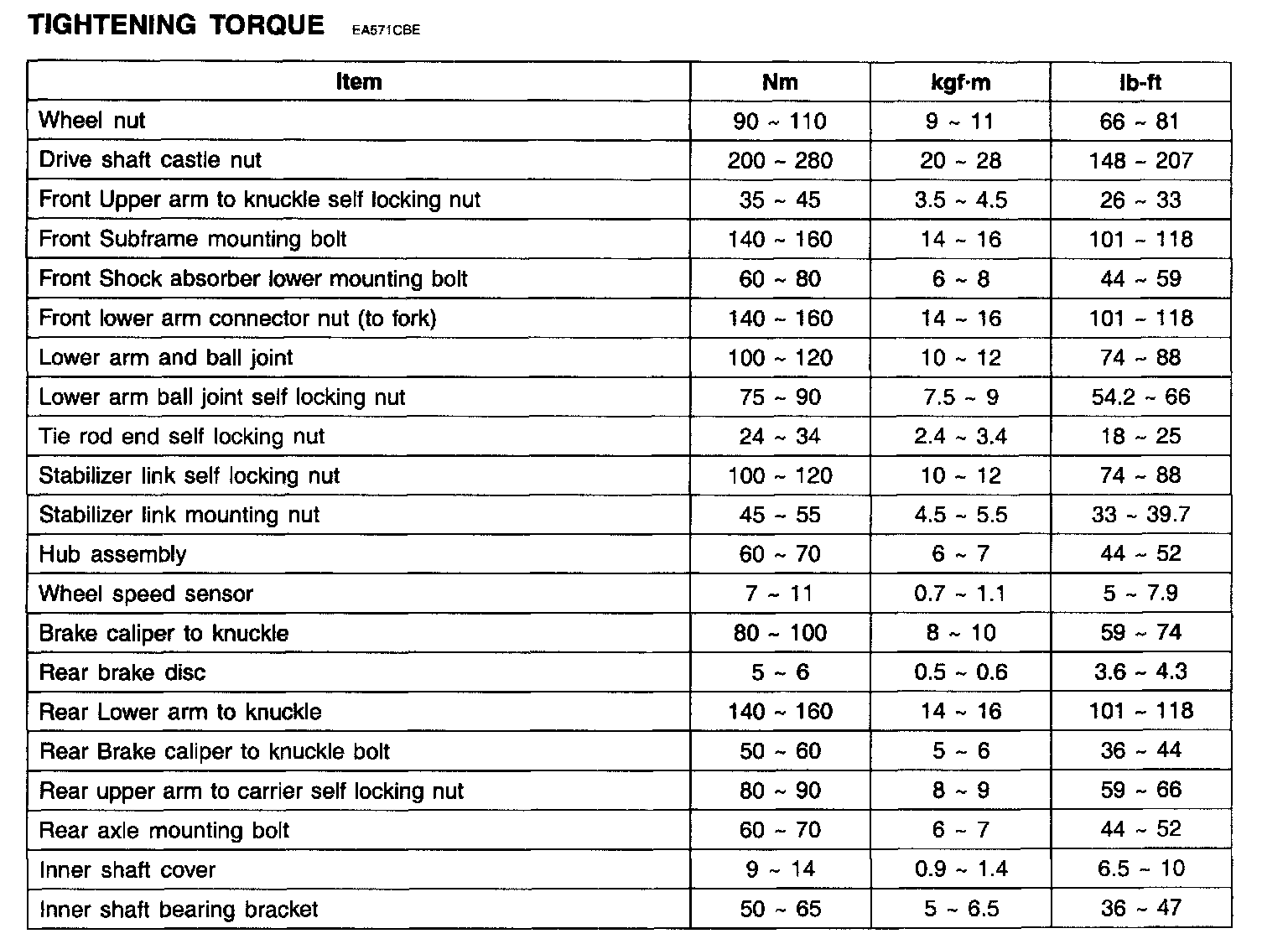 TIGHTENING TORQUE: