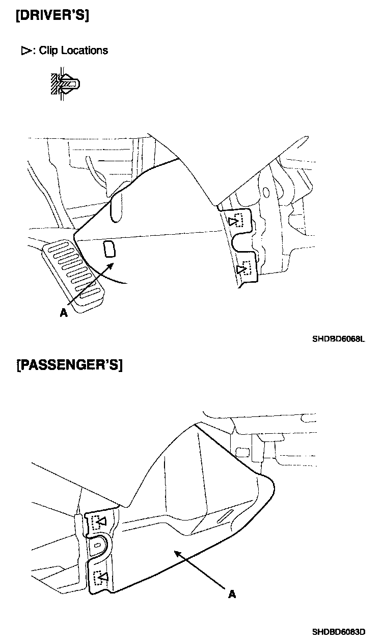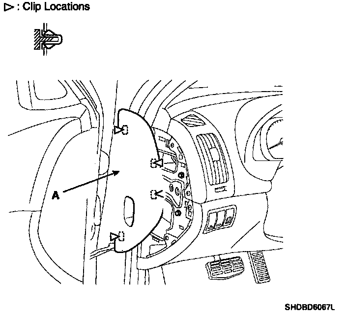 1. Remove the crash pad side cover (A).