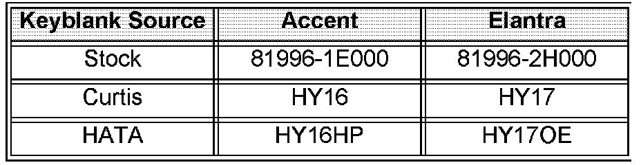 2008 ACCENT AND ELANTRA KEY CUTTING INFORMATION