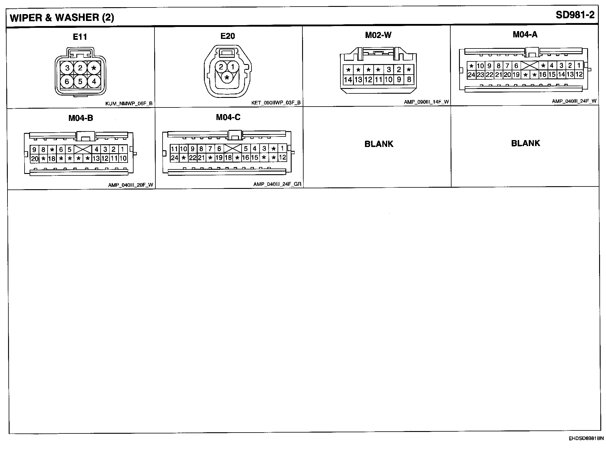 Wiper & Washer Connector Pin Outs: