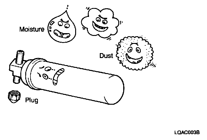 - When removing refrigerant components from a vehicle, cap immediately the components to prevent from the entry of moisture.