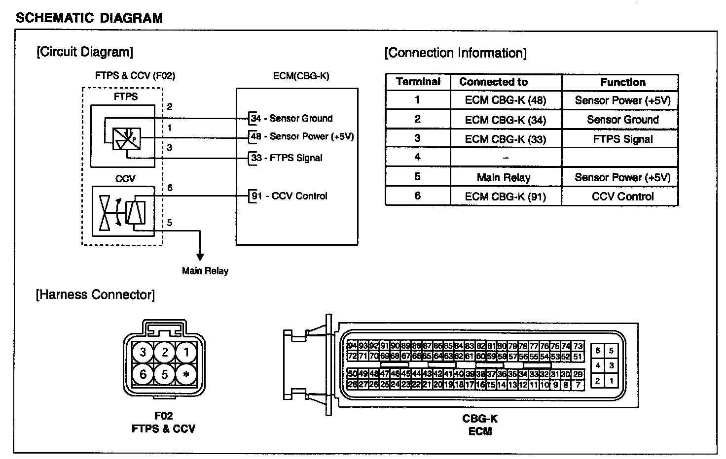 The evaporative emission control system prevents hydrocarbon vapors from escaping from the fuel tank into the atmosphere where they could form photochemical smog. Gasoline vapors are collected in the charcoal canister. The Fuel Tank Pressure Sensor (FTPS) is installed on the canister and is an integral part of the evaporative monitoring system. The PCM monitors the FTPS signal to detect vacuum decay and excess vacuum. The FTPS measures the difference between the air pressure inside the fuel tank and outside air pressure to check the purge control solenoid valve operation and for leak detection in the evaporative emission control system by monitoring pressure and vacuum levels in the fuel tank during the purge control solenoid valve operating cycles.