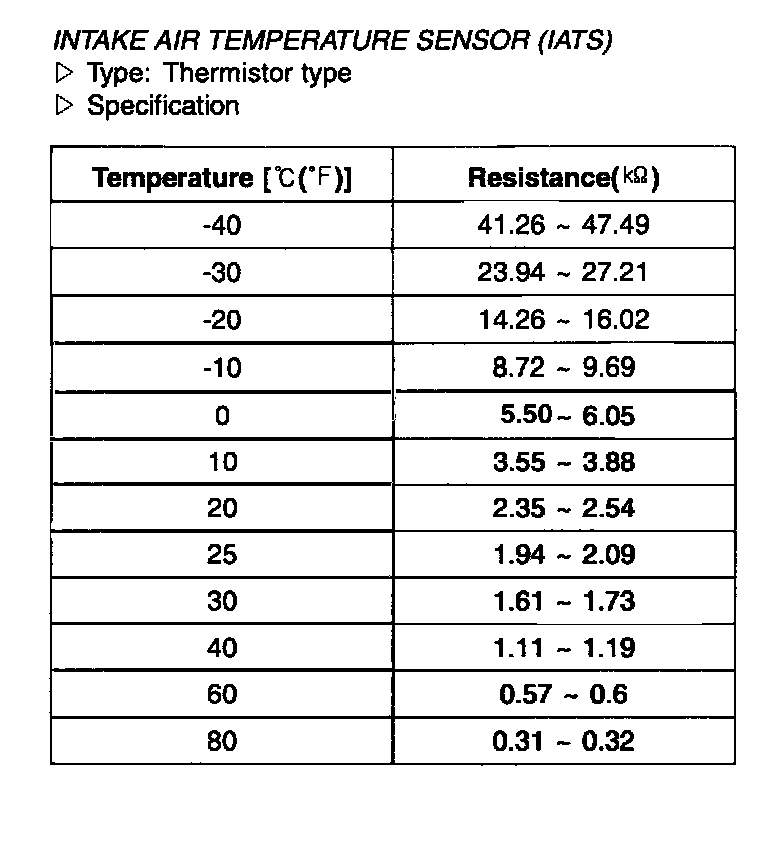 Air Temperature Sensor ( Ambient / Intake ): Specifications