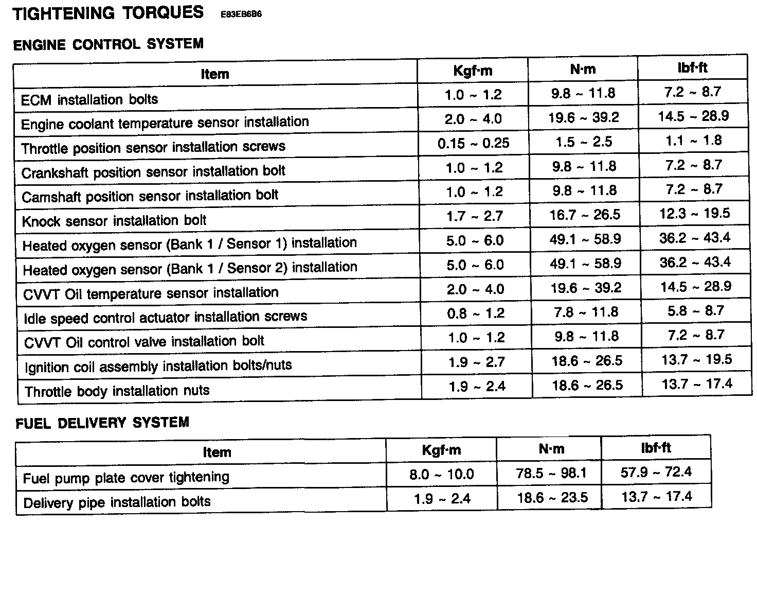 Tightening Torques: