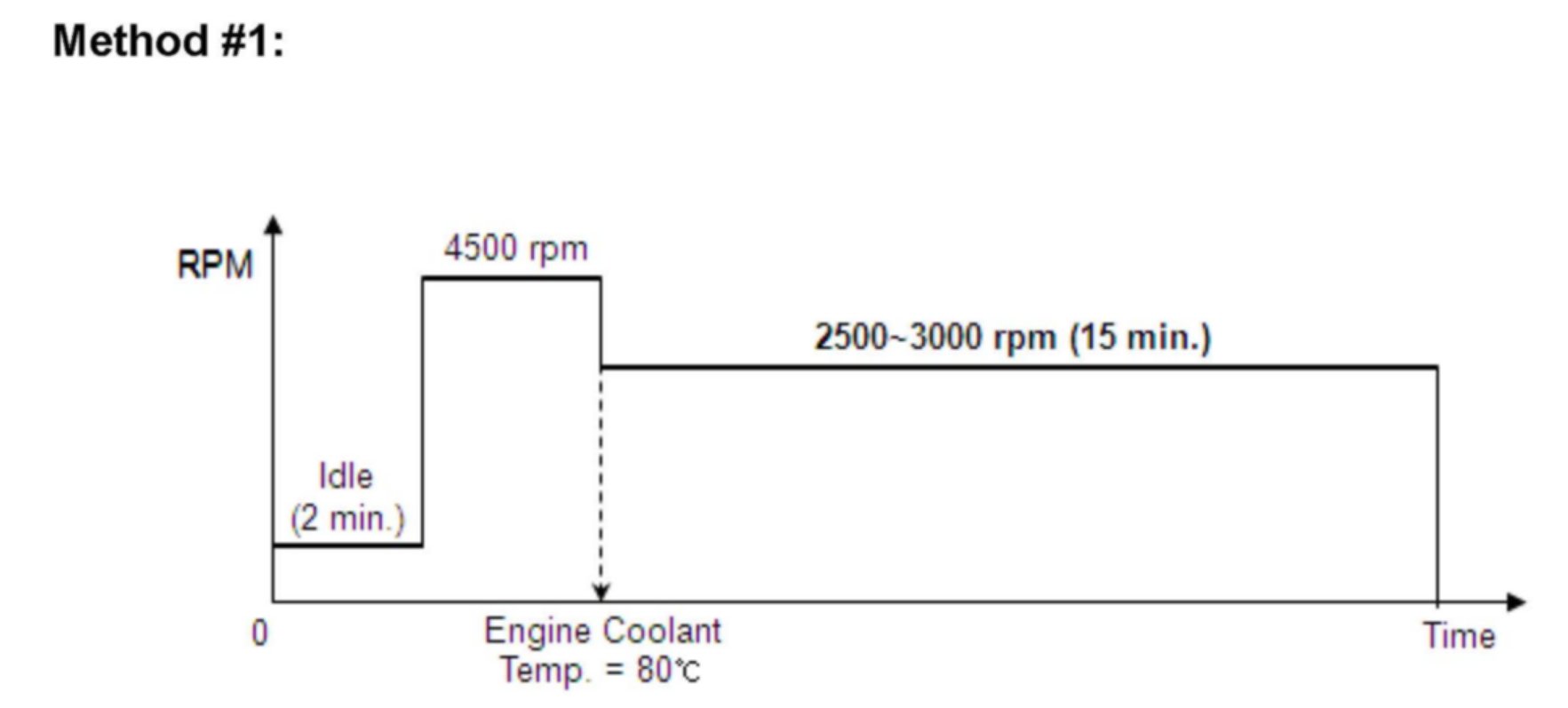 ^ Method #1: Keep the engine running at 2500-3000 rpm in the "N" position for 15 minutes after warming up the engine according to the procedure outlined in this bulletin.