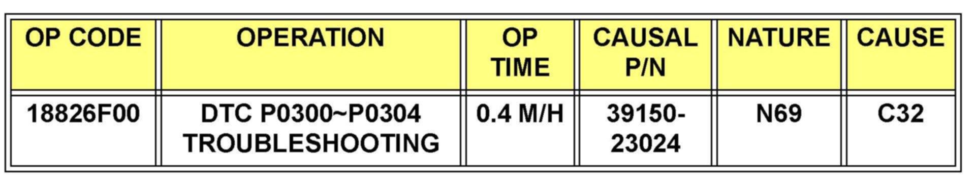 When starting the engines of some ELANTRA (HD) 2.0L vehicles after long-Term storage, the check engine light may illuminate with misfire related trouble codes P0300 through P0304: