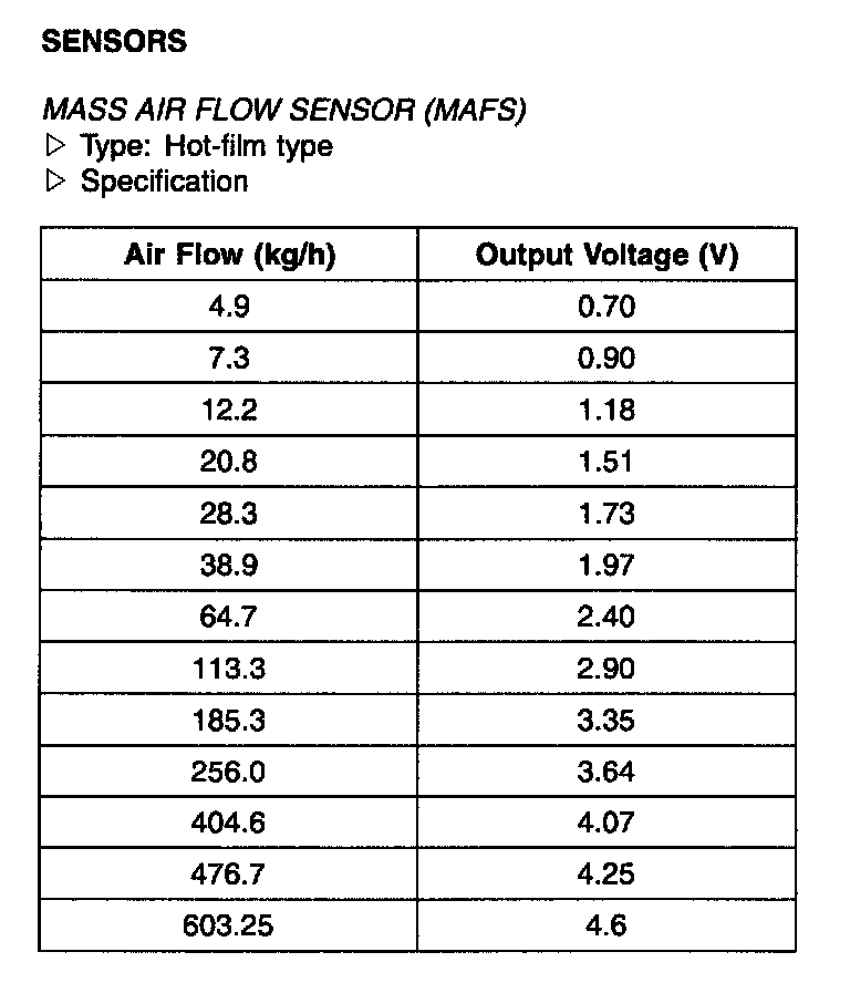 Mass Air Flow Sensor (MAFS) - Specification: