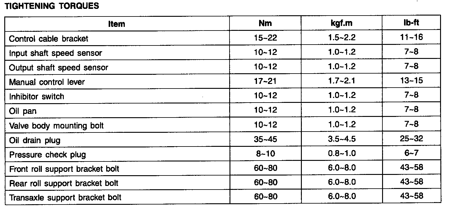 TIGHTENING TORQUES
