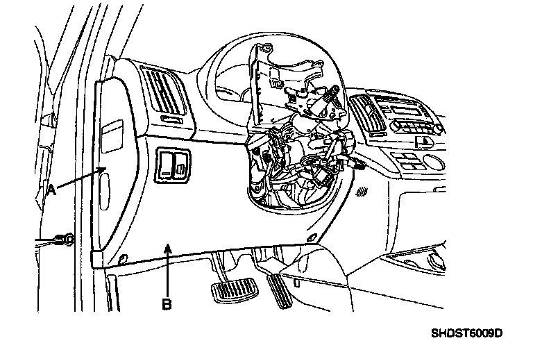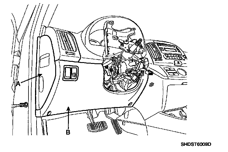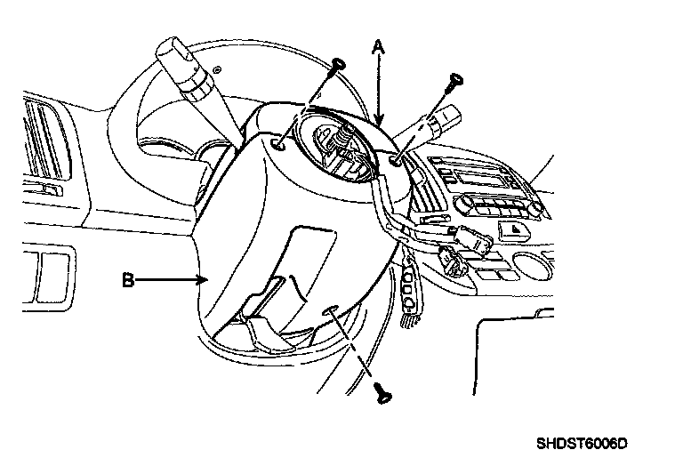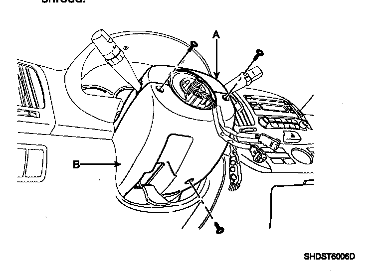 7. Remove the steering column upper (A) and lower (B) shroud.